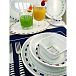 Набор посуды из меламина — стойкого к ударам и царапинам керамоподобного пластика. Большая тарелка, десертная тарелка, суповая миска, кружка - все по 6 шт (всего 24 предмета в наборе). Набор поставляется в элегантной сумке, которая также может быть использована в хозяйственных целях. Цена за набор.